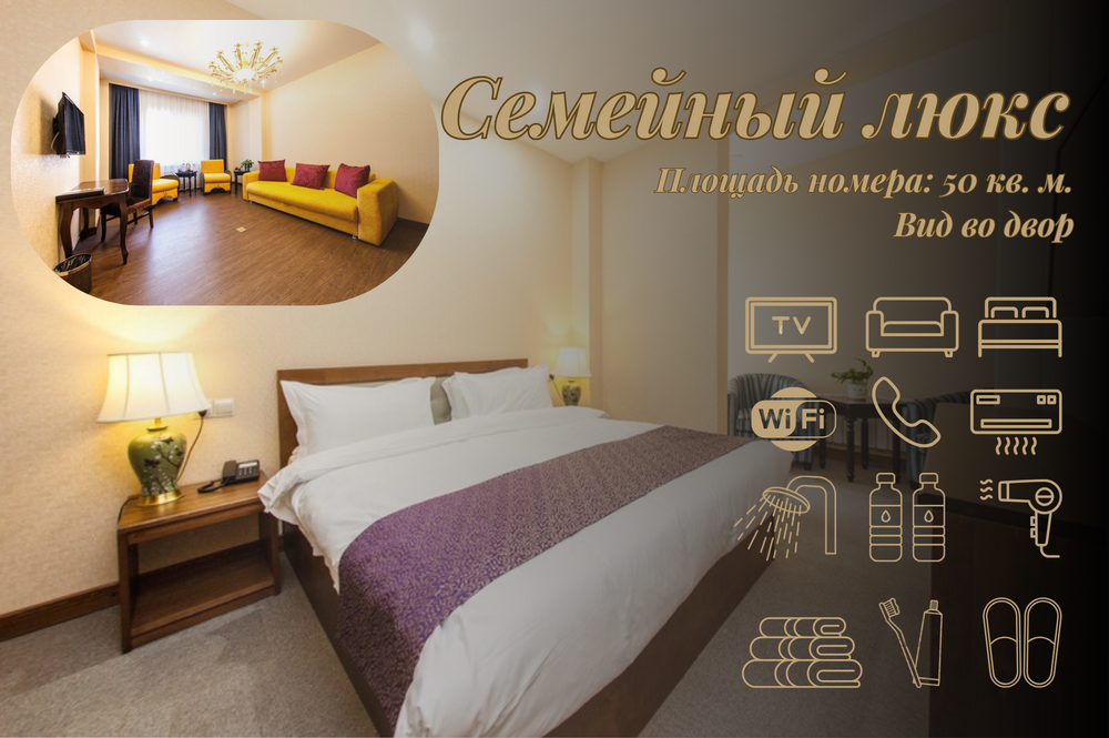 Просторный, двухкомнатный номер с видом на город, оборудованный двумя санузлами.