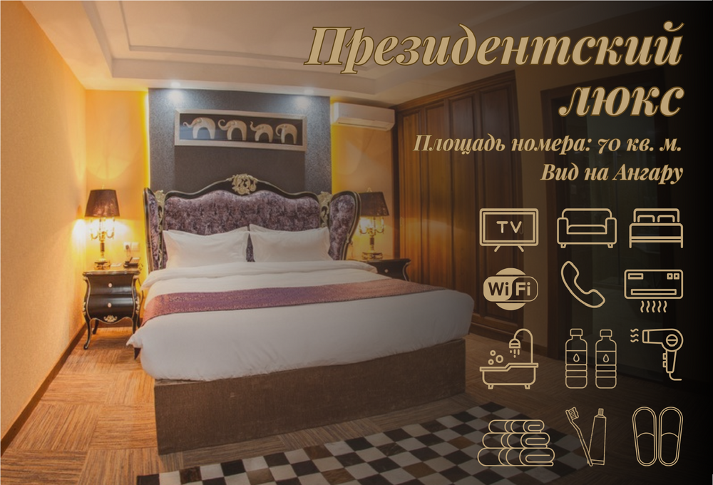 Просторный, уютный двухкомнатный номер с панорамными окнами в пол и чудесным видом на природный пейзаж реки Ангара.